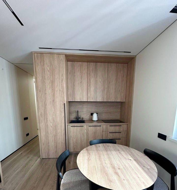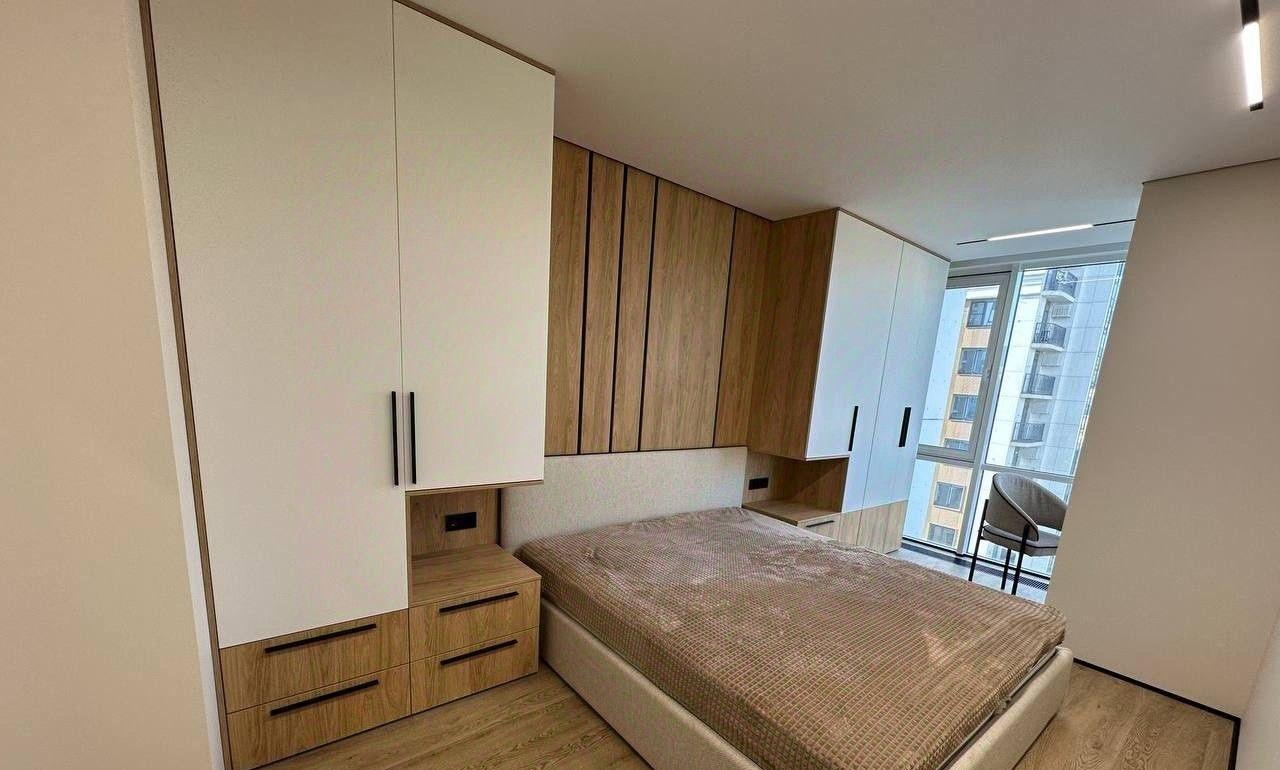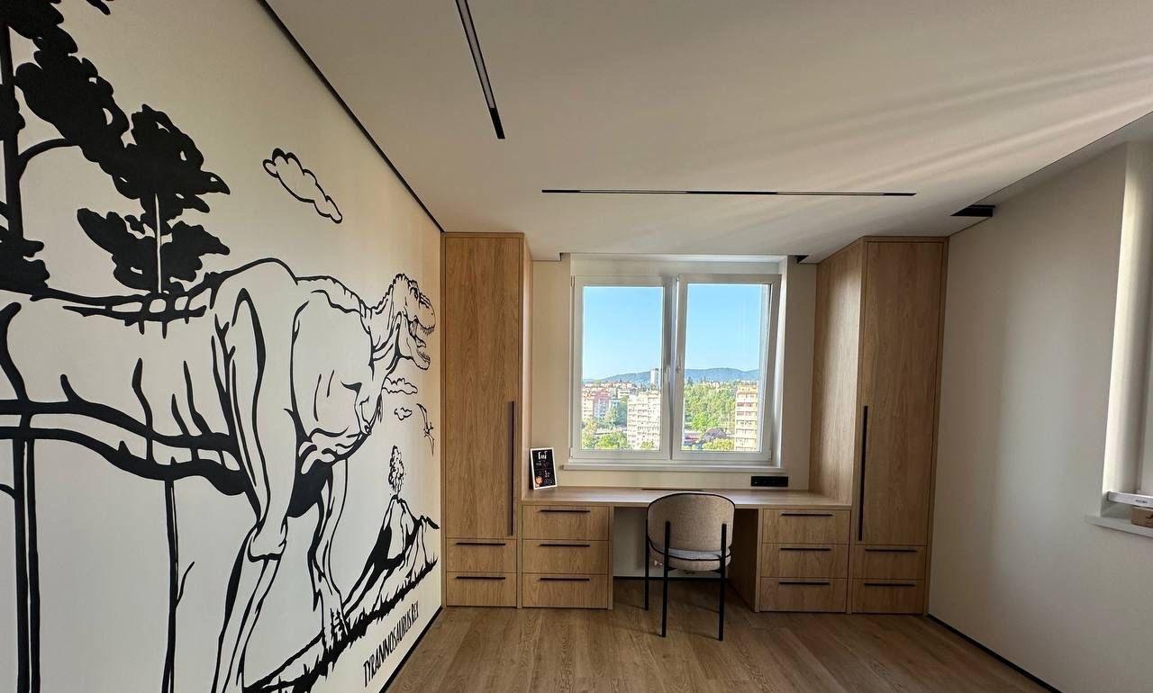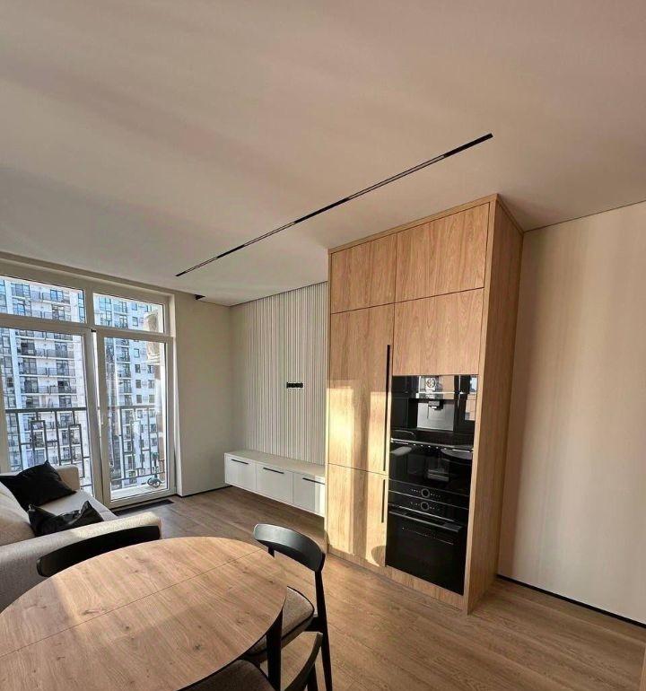 Особое внимание уделено комфортному проживанию и удобству владельцев. Квартира полностью оборудована качественной современной мебелью (сделана вся под заказ) и бытовой техникой, среди которой выделяются изделия бренда Bosch: стиральная и сушильная машины, встроенная кофемашина, микроволновая печь, духовой шкаф. Дополнительно установлены теплые полы в ванной комнате.