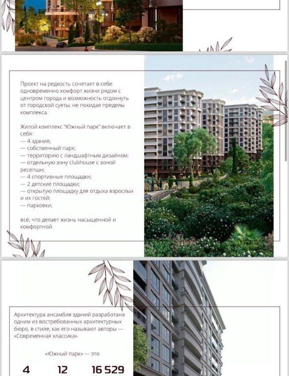 Продается КВАРТИРА МЕЧТЫ В СОЧИ , однокомнатная квартира на 12 этаже с прекрасным прямым видом на парк в новом жилом комплексе бизнес-класса ЖК "Южный парк", который строится по ФЗ-214 с использованием эскроу-счетов. Подключены все центральные коммуникации: вода, свет, канализация. ЖК находится в центральном районе и имеет отличную, развитую инфраструктуру: гимназии, детские сады, магазины, торговый центр "МореМолл", автобусные остановки, Университет, имеется индивидуальный выход из комплекса в "Корчагинский сквер" площадью 14 гектар - это лучшее, спокойное место в центральном районе для прогулок с детьми, ходьбы, занятий спортом! На территории ЖК в 1.6 гектар располагаются всего 4 дома, которые занимают лишь 16% площади участка, остальная территория предназначена для ландшафтного озеленения, детских и спортивных площадок, мест отдыха и фонтанной зоны. Территория комплекса огорожена и находится под видеонаблюдением. Квартира с витражными окнами и балконом. Звоните.Ссылка на объявление: https://lux-26.ru/sale/saleapartments/176428